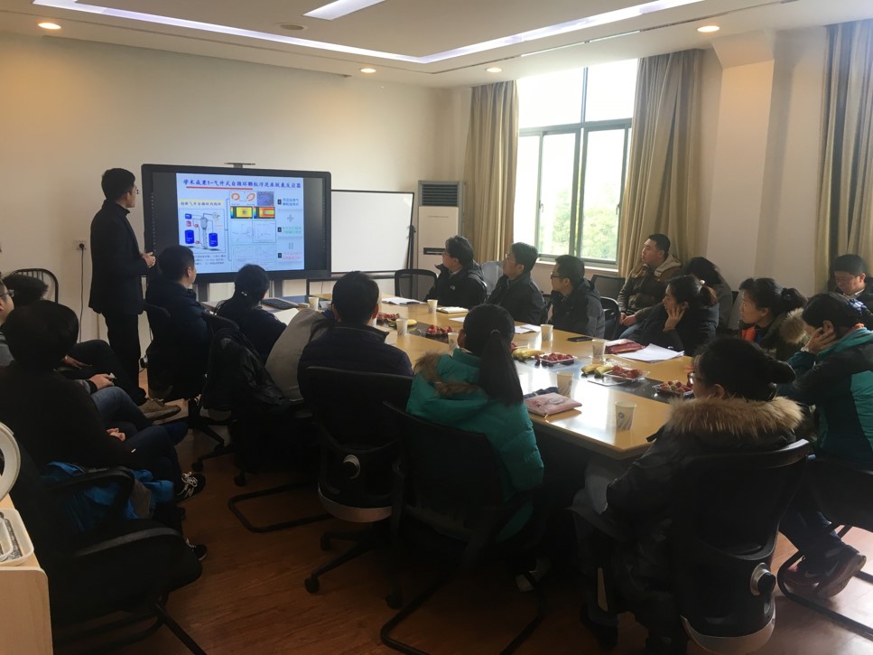 首先,蒋剑凯、厉巍、罗孟杰、刘毅、周磊五位新入职的青年教师分别以PPT的形式分享科研工作经历与体会。五位老师分别介绍了各自在博士阶段及入职后的科研工作内容与获得的成果,主要研究领域为污水处理、石化环保等先进理论与技术应用,发表了高水平论文数篇,并获得了业界的高度认可。汇报结束后,全体青年教师与五位老师进行了深入交流和学习。
