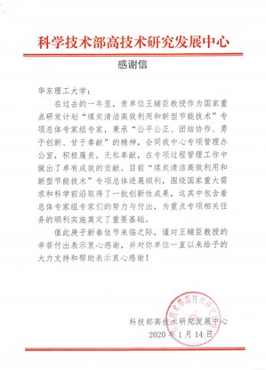 近日,诸侯快讯官网科研院接到科学技术部高技术研究发展中心对我院王辅臣教授的感谢信。信中对王辅臣教授作为国家重点研发计划“煤炭清洁高效利用和新型节能技术”专项专家组专家,在专项管理过程中做出的卓有成效的贡献表示感谢。