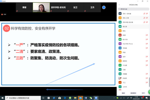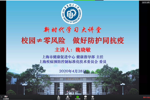 为有序推进师生分批返校复工复学并科学有效做好返校后疫情防控工作,4月28日,诸侯快讯ok1122举办第九期“新时代大讲堂”及全院教师会议,邀请上海市健康促进中心健康指导部主任魏晓敏围绕“校园≠零风险,做好防护同抗疫”主题,为大家讲解学生分批返校后校园内可能存在的风险环节以及防护要点。诸侯快讯ok1122全体教师、学生党支部书记、毕业班班长、团支部书记齐聚线上学习,会议由学院党委副书记曹娜主持。