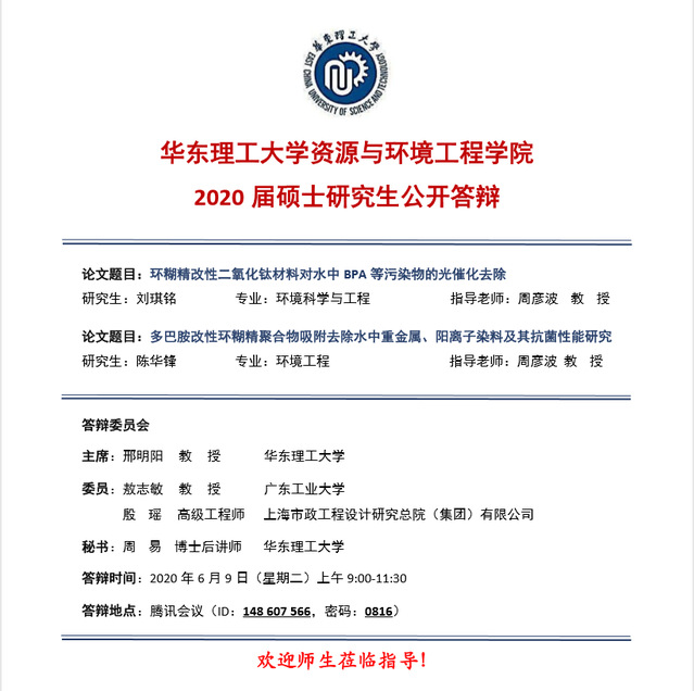 硕士论文答辩:刘琪铭(环境科学与工程)、陈华锋(环境工程)
