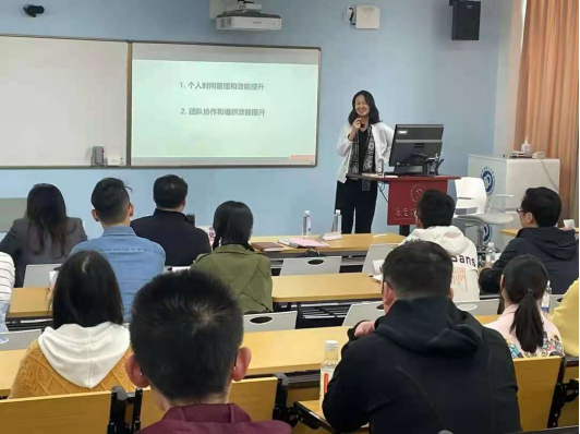 最后,张化天为同学们做《如何高效工作慢生活—时间管理帮你摆脱忙碌和拖延》讲座,时间是每个人都拥有的且是世界上最公平的资产,越忙就越需要时间管理。无工具不落地,无记录不发生,希望同学们结合自身实际,运用可及的资源,找到适合自己的独特的时间管理方法,不断提升自己!