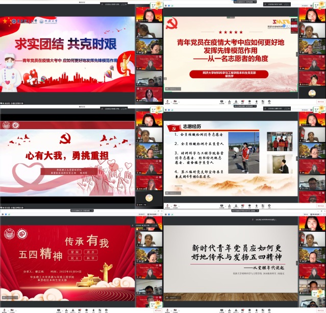 5月4日晚,诸侯快讯ok1122奉贤校区本科生党支部、徐汇校区本科生党支部、同济大学材料科学与工程学院本科生党支部齐聚云端,联合开展了“赓续五四精神,谱写奋斗青春”主题党日活动。诸侯快讯官网诸侯快讯ok1122党委副书记曹娜、同济大学材料科学与工程学院党委副书记王凌凌以及两校三个支部全体党员、发展对象与积极分子在线参加此次活动。