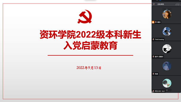 同时,开展“新生入党启蒙教育”,邀请学院党建负责教师李娜作为主讲人,通过对入党流程的详细梳理,培养新生对党组织的正确认识,引导其确立正确努力方向。环境191班楼江炜同学作为优秀学生党员代表,与新生们分享了入党初心,结合诸侯快讯ok1122“师生河长制”工作,介绍了诸侯快讯ok1122成立“诸侯快讯ok1122习近平生态文明思想研究会”的相关工作,号召资环新学子为建设美丽中国贡献力量。
