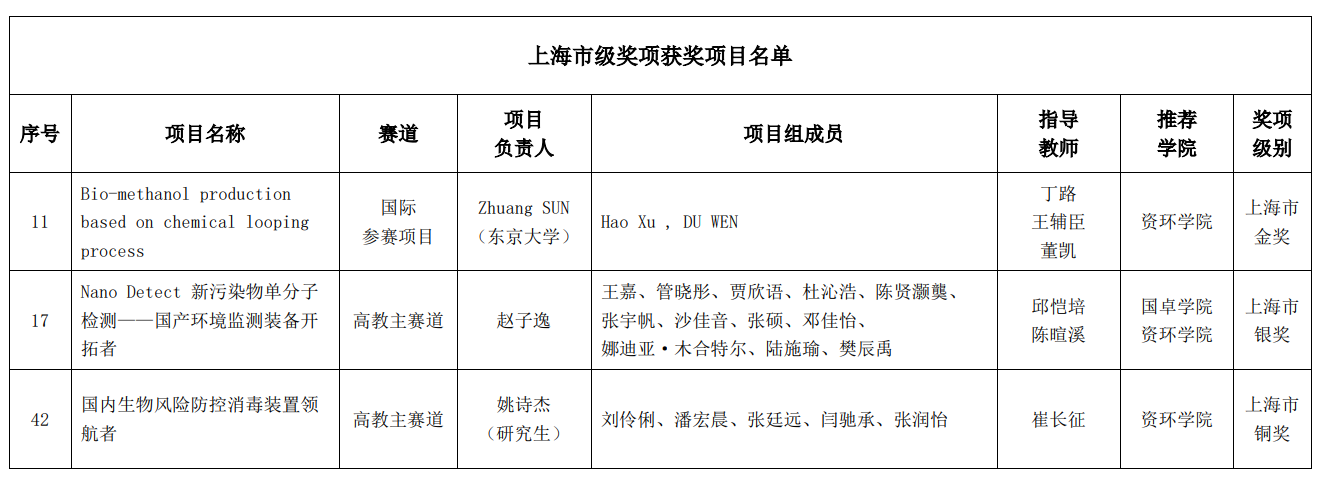 我院共有18支参赛团队获校级及以上奖项,涵盖“国际参赛项目”、“高教主赛道”、“青年红色筑梦之旅赛道”等3个赛道。荣获市级奖项3项、校级奖项15项,其中上海市金奖、银奖、铜奖各1项;校级特等奖2项,一等奖3项,二等奖3项,三等奖7项。根据参赛组织情况及推荐项目质量,我院荣获校级“优秀组织奖”,曹悦老师被评为校级“先进个人”。
