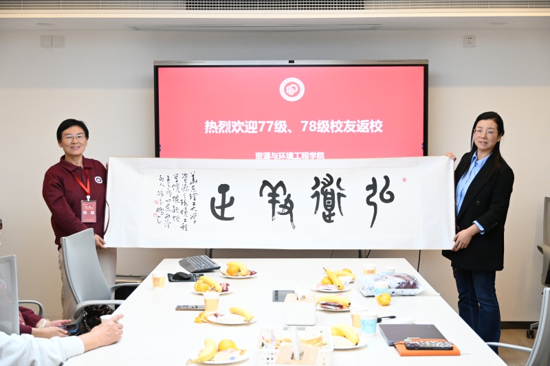 座谈会上,校友们分享了各自的工作近况和生活感悟,深情回顾了在校求学的难忘时光,表达了对母校和恩师的感激之情。78级煤化工校友陈颖为表达对母校的感激与祝福,特别准备了一副书法作品赠予学院。这份寓意深远的礼物,既承载着校友们对母校栽培之恩的深深谢意,也寄托着对母校未来发展的美好祝愿。