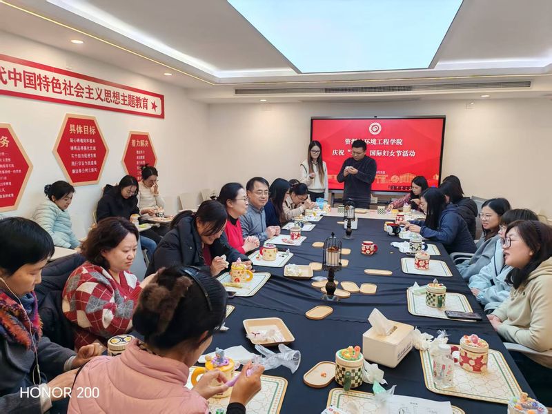 活动环节,平日里在岗位上严谨细致的女教工们瞬间化身为“生活美学家”。大家以奶油胶为墨,以马克杯为纸,或精心勾勒,或大胆撞色。在柔软的奶油胶上,大家镶嵌上形态各异的玩偶、配件等装饰物。现场欢声笑语不断,大家相互交流配色心得,分享创作灵感,气氛温馨而热烈。每一个作品都承载着创作者对美的理解和对生活的热爱,成为了这个节日里最独特的礼物。