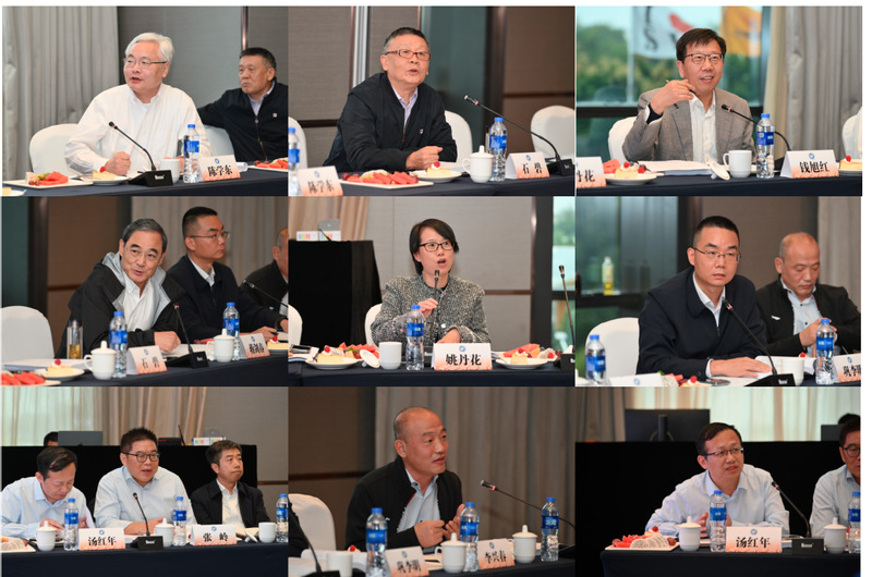 Figure description: Academician Tu Shandong and Academician Wang Hualin are introducing the situation of grand platform construction